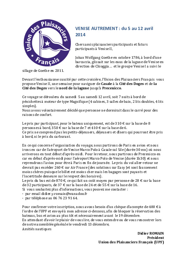 sans frontières - Boutique UPF - Porquerolle’s Cup - Rallye Gérard Méry - 1.000 milles autour du Péloponnèse - Croisière à Venise