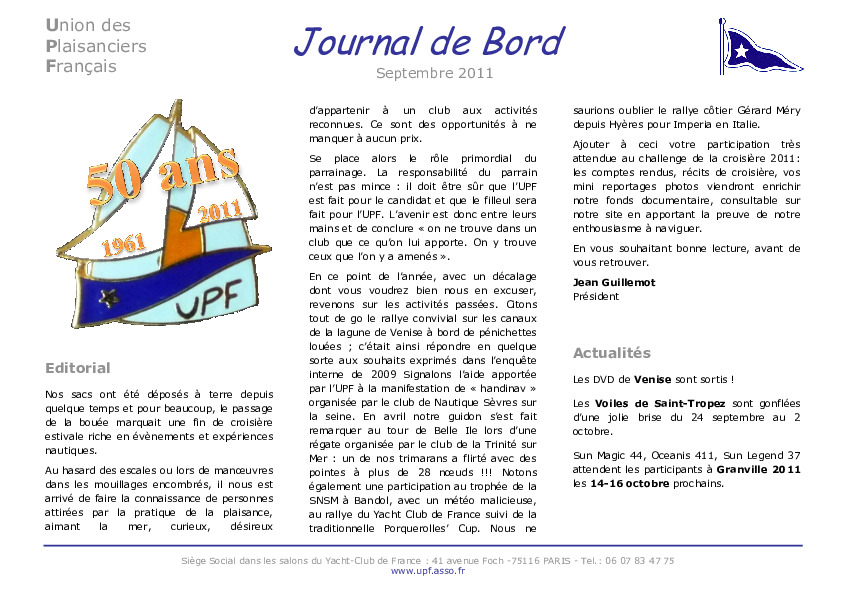 Journal de Bord de Septembre 2011 - Editorial - Actualités - Marins