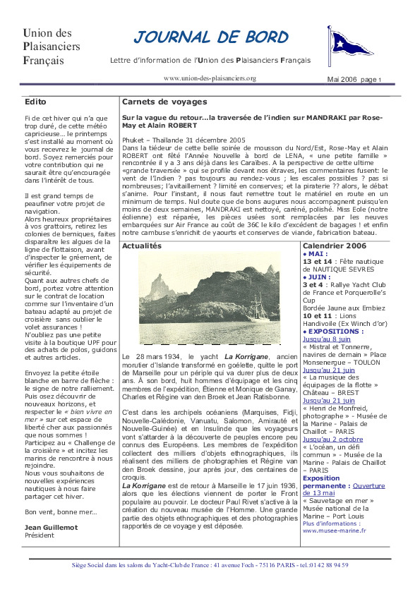 Traversée de l’indien sur MANDRAKI par Rose-May et Alain Robert - Sur les traces de La Korrigane avec Bernard van den Broek - L'annuaire est paru