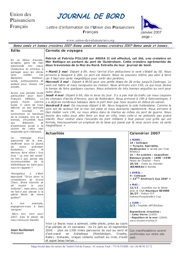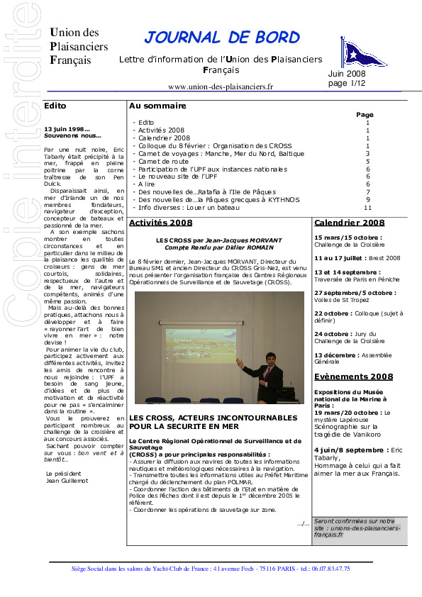 A vos agendas - Notre enquête - AG et Challenge 2008 - Peut-on vaincre la piraterie par Jean-Michel Barrault - Retour de Grèce sur Elodie par Jean-Pierre BARBOT - Croisière des volcans sur Nérée VI par Valérie Ternois - Nouvelles de nos lointains voyageurs - Brèves de pontons - Les LEDs et vous.