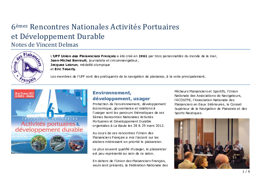 Mars 2012 - 6èmes Rencontres Nationales Activités Portuaires