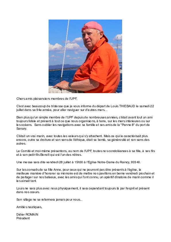 Marc Verdet, délégué par la Ligue Ile de France de la FFV, a représenté l'UPF à l'assemblée générale de la Fédération Française de Voile qui s’est tenue le samedi 28 mars 2015